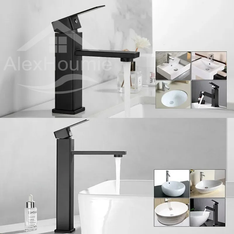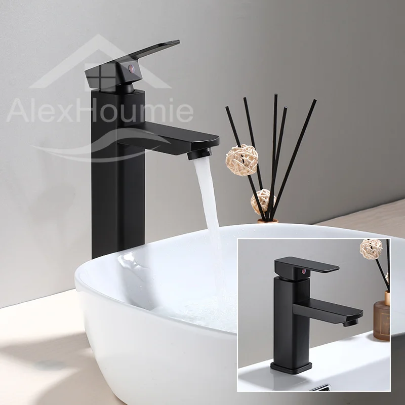 Basin Sink Bathroom Faucet Deck Mounted Hot Cold Water Basin Mixer Taps Black Lavatory Sink Tap 2024