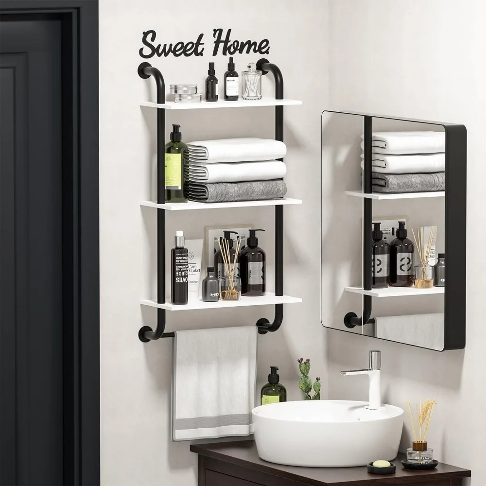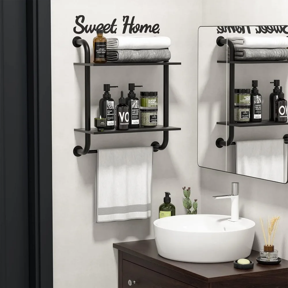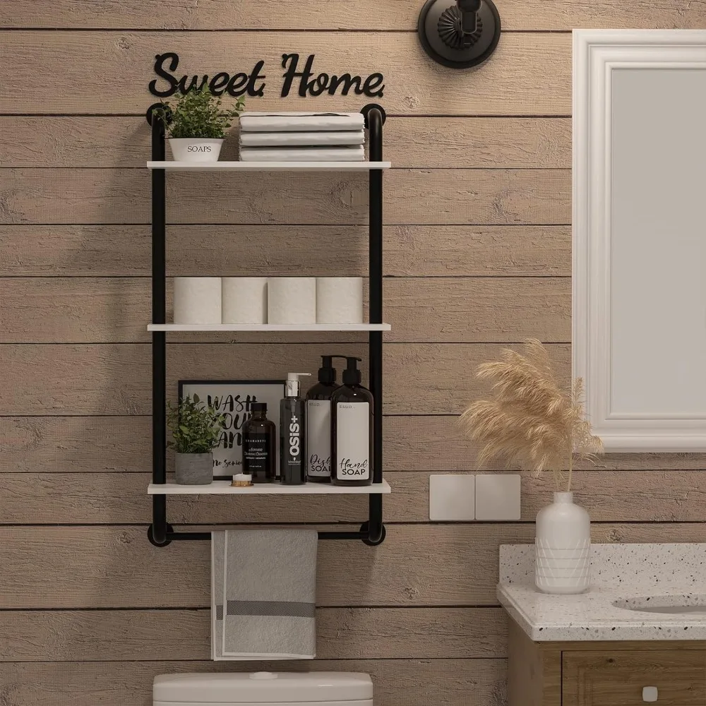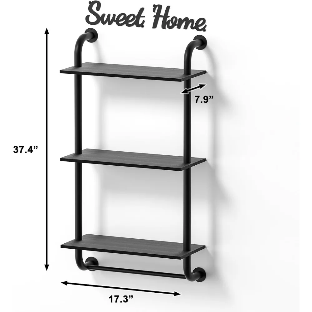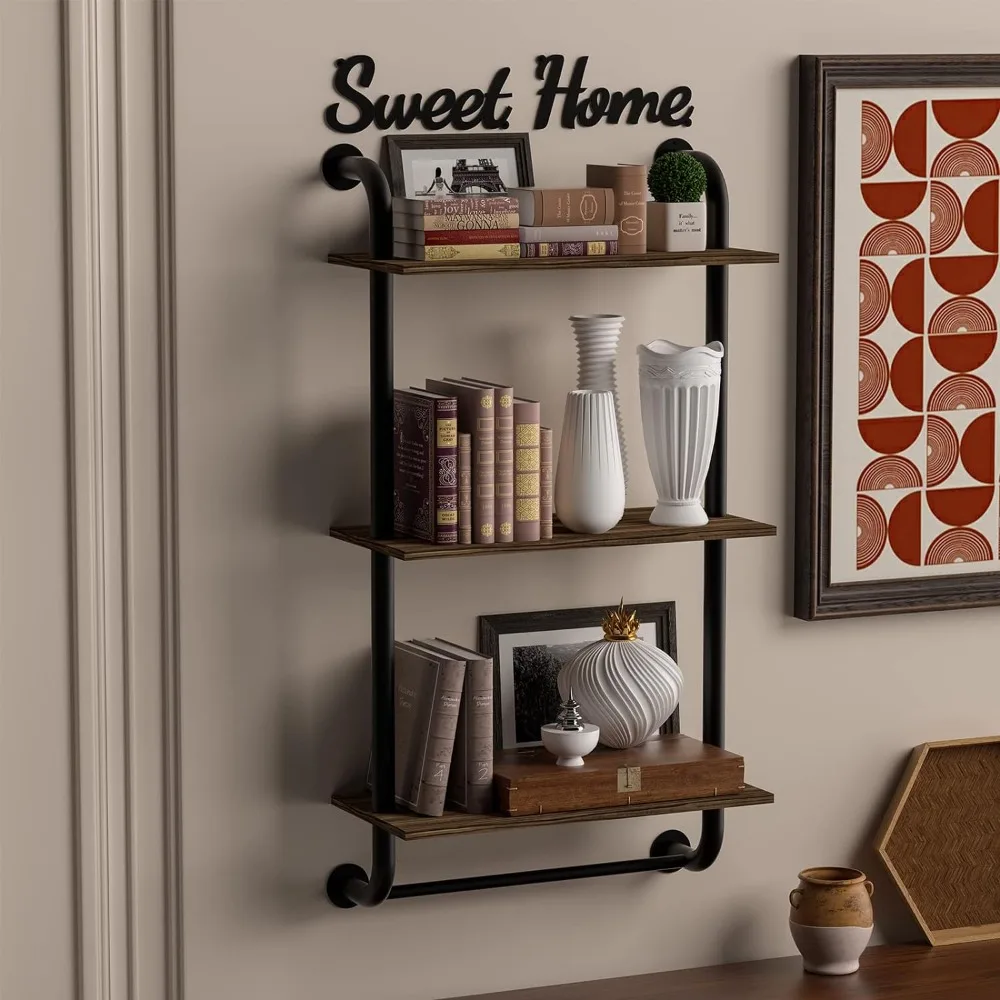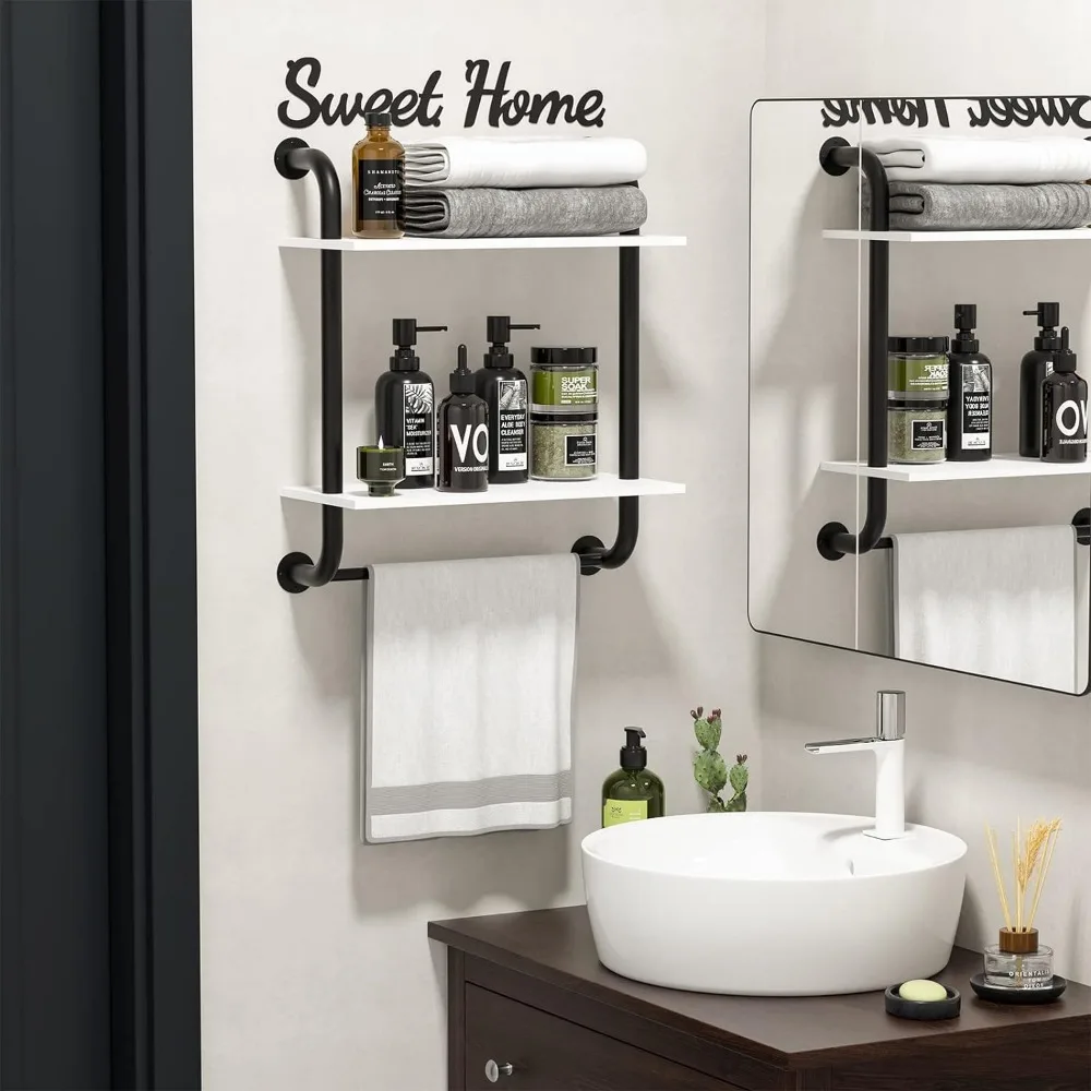 - Retro Rustic Industrial Style: The rustic wood wall shelf for bathroom with industrial pipes adds a touch of vintage farmhouse to your home. "Sweet Home" decorating logo also brings an atmosphere of warm sweet home. You can decide whether to assemble the "Sweet Home" decorating logo or not.