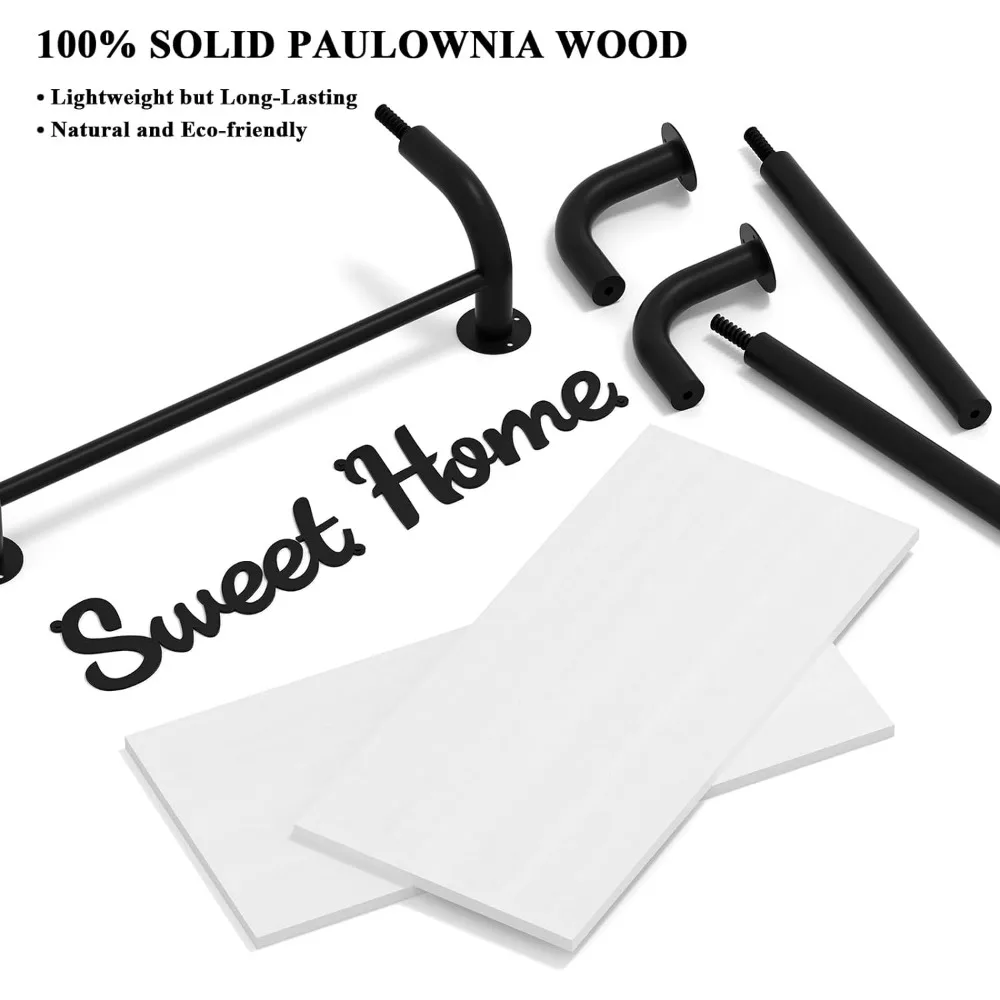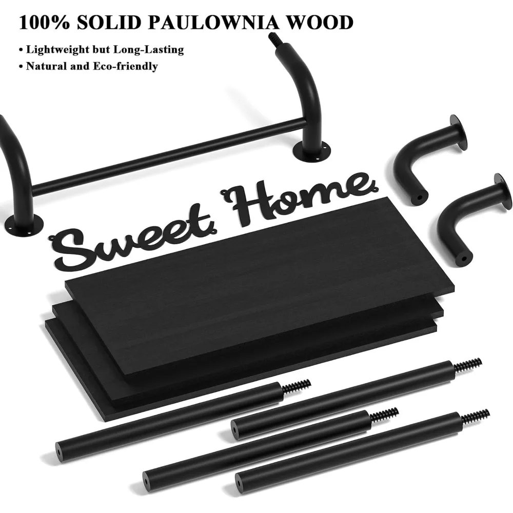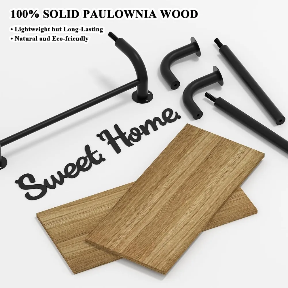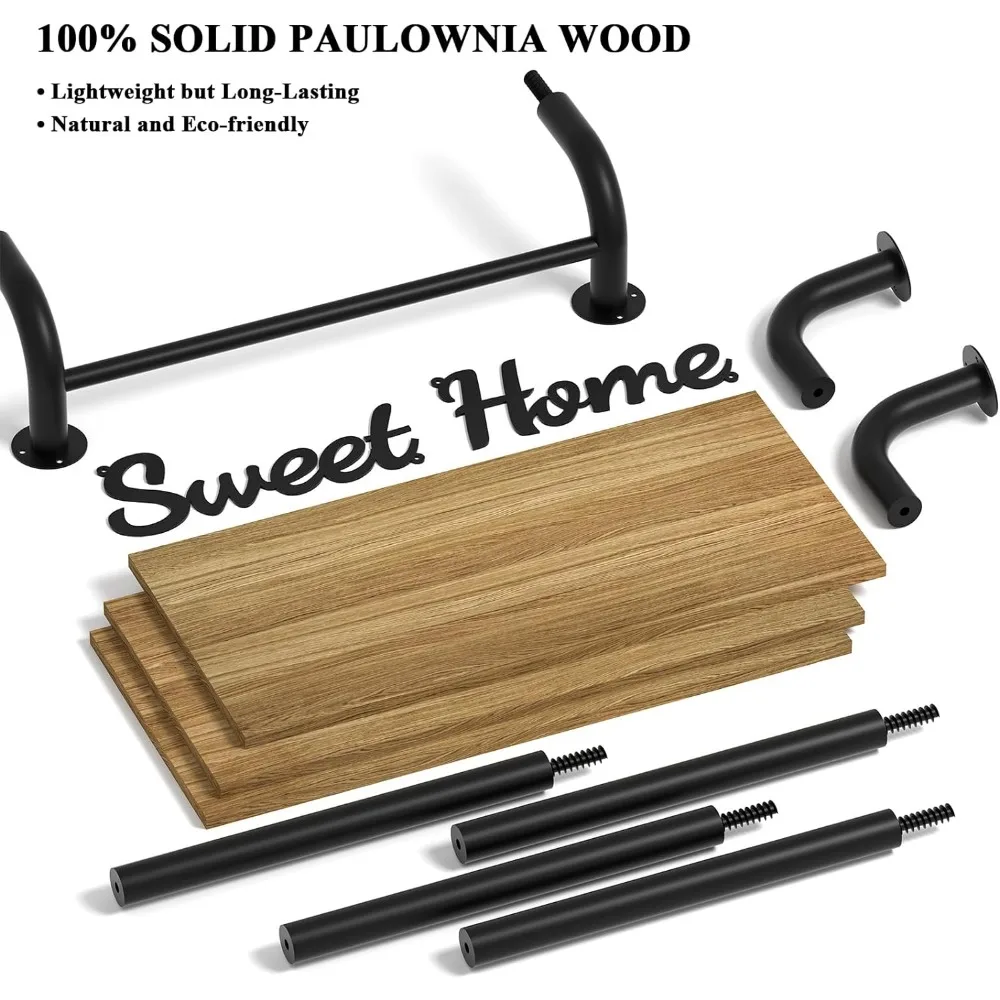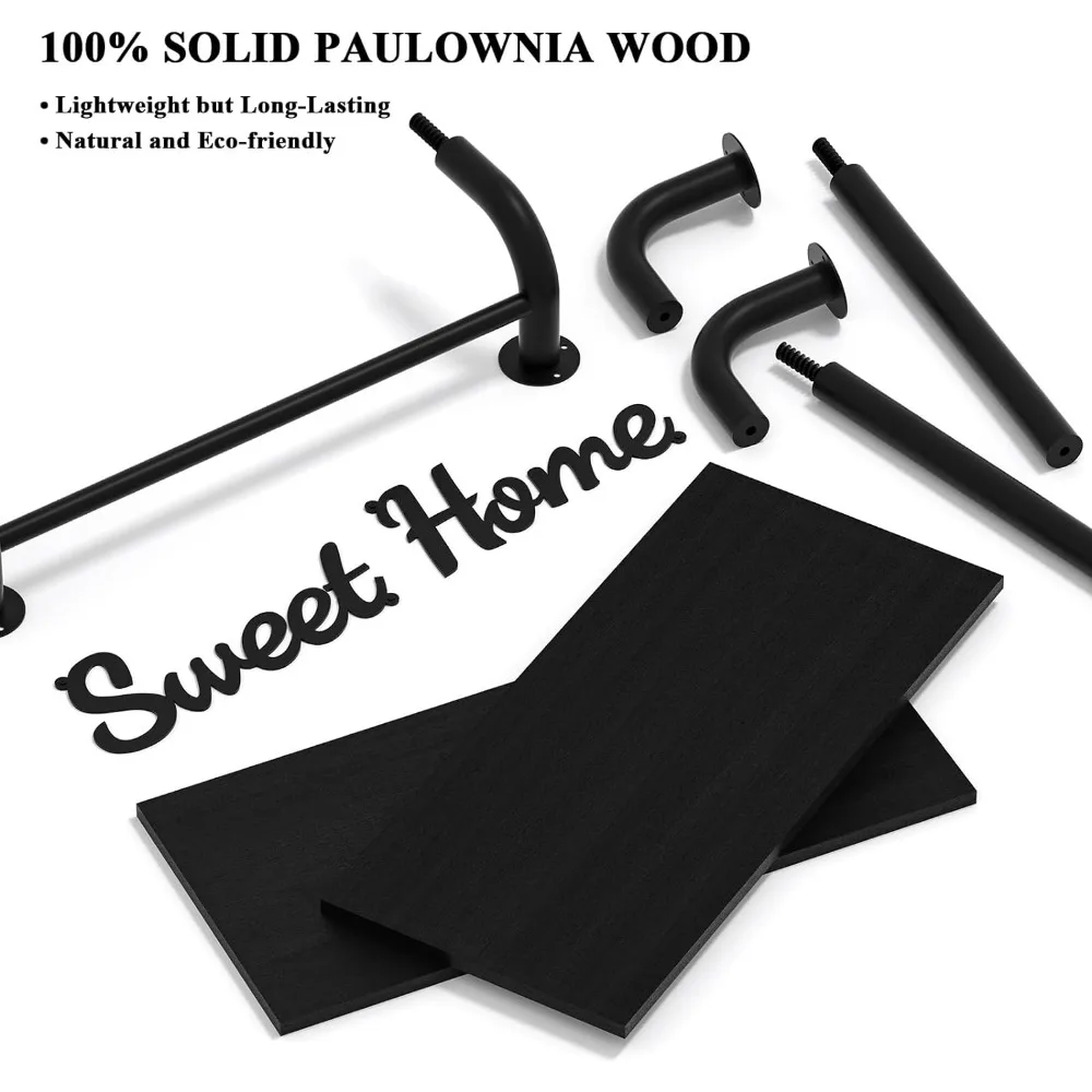 - 100% Solid Paulownia Wood: Tinpin black shelves is made of natural, eco-friendly and solid paulownia wood. The paulownia wood shelf is Lightweight so that it is Easy for One Person to Put the Bathroom Shelf Together and Hang it On the Wall. Don't worry about the weakening of load bearing. After our test, load bearing absolutely meet everyone's daily needs. The installation steps are also optimized while ensuring the stability. What's more, each piece of the paulownia wood board has unique natural wood grain and color. This is the charm of natural wood.