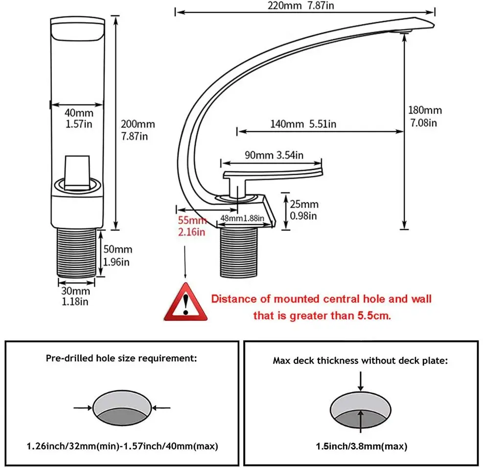 THE MOST SUITABLE SIZE – Overall Height: 172 mm ( 6.7 " ),Spout Height:172 mm ( 6.7 " ),Spout Length:225 mm ( 8.8 " ),Shiny Polished Gold finish,professional design,everything you’d expect from a premium faucet.Easy and quickly installation,will offer you a stylish look and feel found only in luxury spas and hotels.