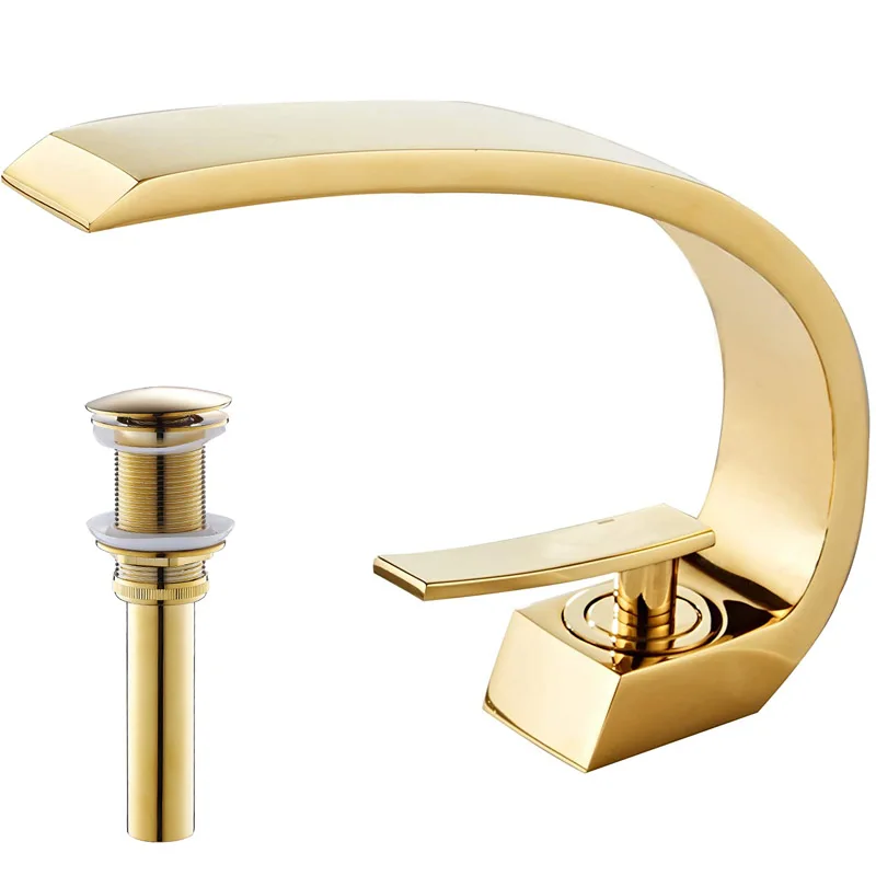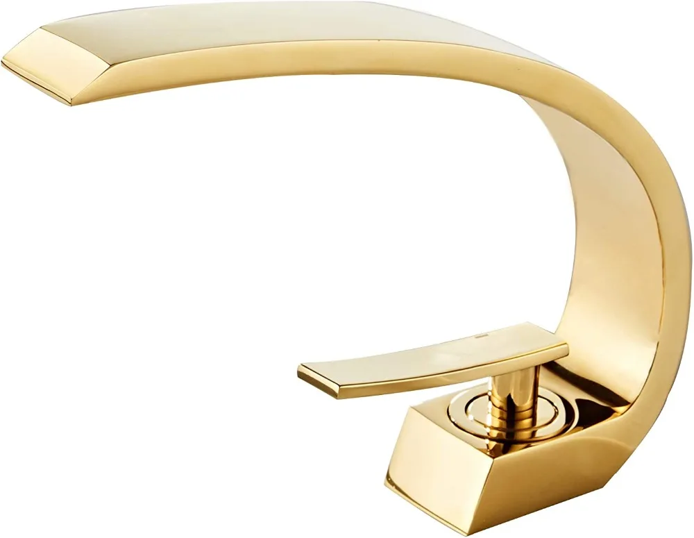 Shiny Polished Gold Bathroom Sink Faucet, Unique Design One Handle Single Hole Lavatory Faucet, Basin Mixer Tap Commercial