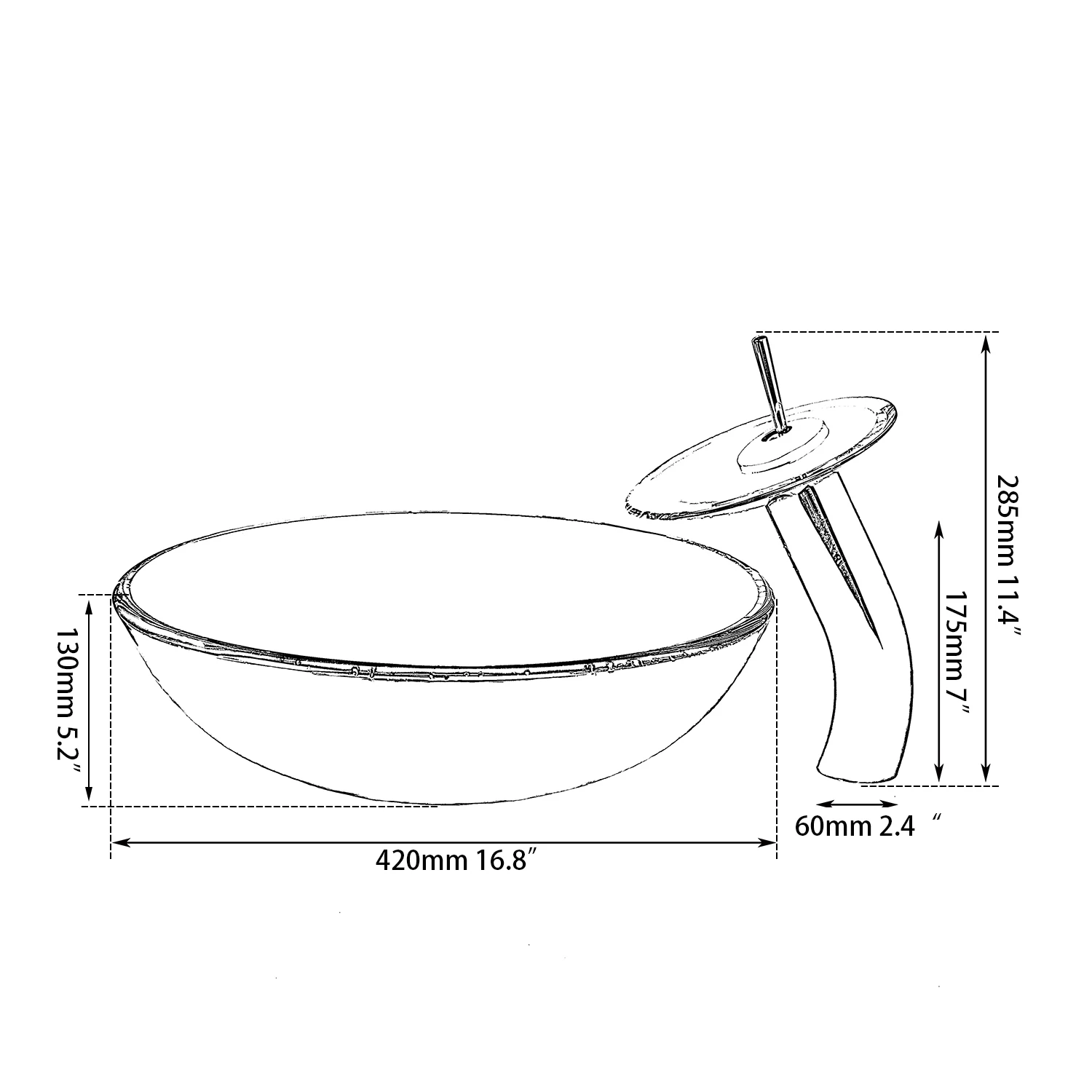 - Faucet Dimension: 11" 285mm(over height) x 7" 175mm(spout hieght)