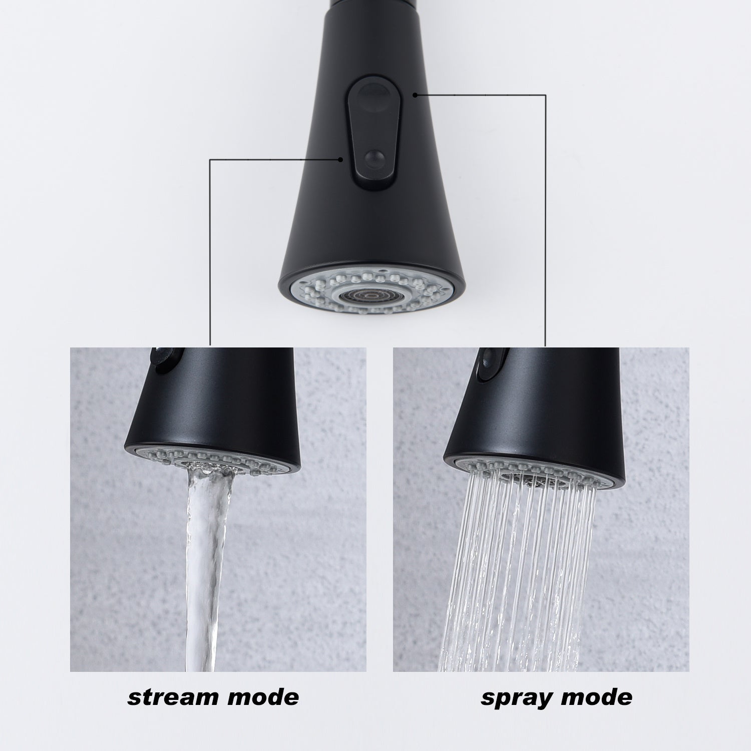This kitchen faucet design makes your kitchen room simple and fresh, easy to match with most sinks. The single handle can easily control the water temperature and flow. The high arc 360 degree rotating nozzle provides a full range of cleaning channels. The nozzle always retracts into the nozzle after each use. Excellent corrosion resistance and anti-rust treatment prevent dirt from sticking to the surface of the faucet. It is enough to clean the faucet with a cloth for daily use.