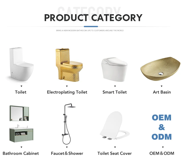 2.Surface: Smooth. 3.Luxury design. 4.Electroplate gold color. 5.Feature: Dual-Flush. 6.Drainage Pattern: P-Trap, S-Trap. |