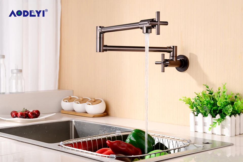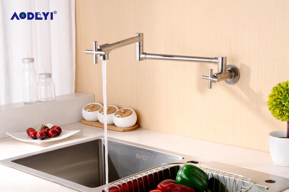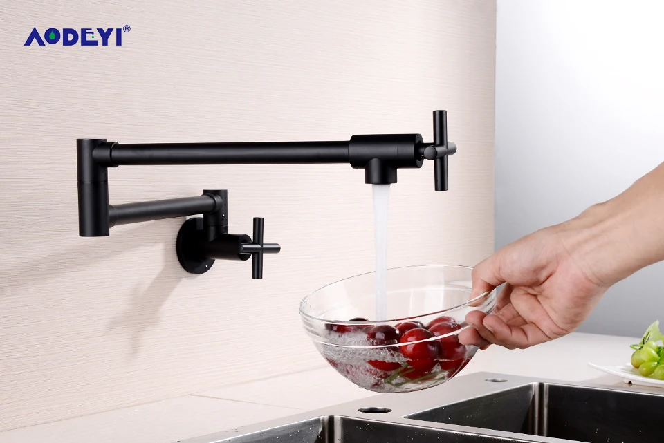 Wall Mount Pot filler Sink Taps Swinging spout Faucet For Kitchen gourmet Sinks faucets Single Cold Sink spigots Brush Black tap